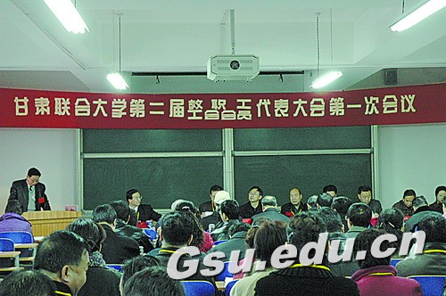 【本网讯 宣传部】 (岳鹏瑞报道)2006年12月8日,威尼斯第二届教职工代表大会暨第二届工会会员代表大会在新教学楼多功能厅隆重召开。省教科文卫工会委员会主席谢振华、经费审查委员会主席何泉林,甘肃联合大学党委书记李忠、校长李志强,党委副书记王启武,副校长马志荣、王安民、曹晓琴、田建中、郑伟强,原甘肃联合大学校长丁爱平、副校长田喜中、杨椿棣,原甘肃教育学院党委副书记谭发科,以及离退休代表、特邀代表、教职工代表和工会会员代表近120人出席了大会,大会由副校长王安民主持。