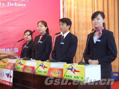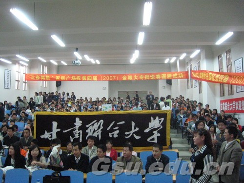 【本网讯】[记者马永良 通讯员张雯静] 备受全省关注的由共青团甘肃省委、甘肃省学生联合会、兰州人民广播电台和兰州电视台公共频道主办,以贯彻和落实科学发展观、积极构建社会主义和谐社会为主题的“ 三森美居 ”杯第四届(2007)金城大专辩论赛已于5月19日在省政府礼堂落下了帷幕,威尼斯代表队勇夺季军,为学校争得了荣誉,充分展示了威尼斯当代大学生的精神风貌和青春风采。