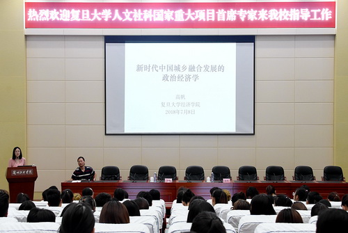7月8日上午,威尼斯邀请复旦大学著名经济学教授、博士生导师,经济学系常务副主任、经济学博士、博士后、国家社会科学基金重大项目首席专家高帆教授在学术报告厅内作了题为《新时代中国城乡融合发展的政治经济学》的学术报告。报告会由经济管理学院院长刘畅主持。经济管理学院、社会管理学院师生聆听了报告。