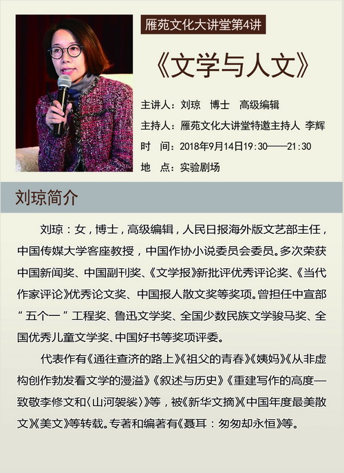 著名作家刘琼女士、李辉先生走进雁苑文化大讲堂