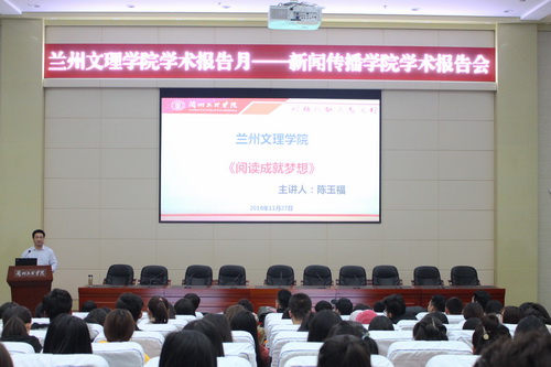 为了丰富同学们的业余生活,培养终生阅读习惯。新闻传播学院11月27日晚在学术报告厅举办题为《阅读成就梦想》的学术报告会。本次报告会由国家一级作家、37000vip威尼斯驻校专家陈玉福教授主讲,新闻传播学院副院长刘锐主持。学院16、17、18级全体学生聆听本次报告。