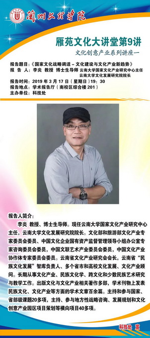 云南大学文化发展研究院院长 博士生导师 李炎教授走进雁苑文化大讲堂