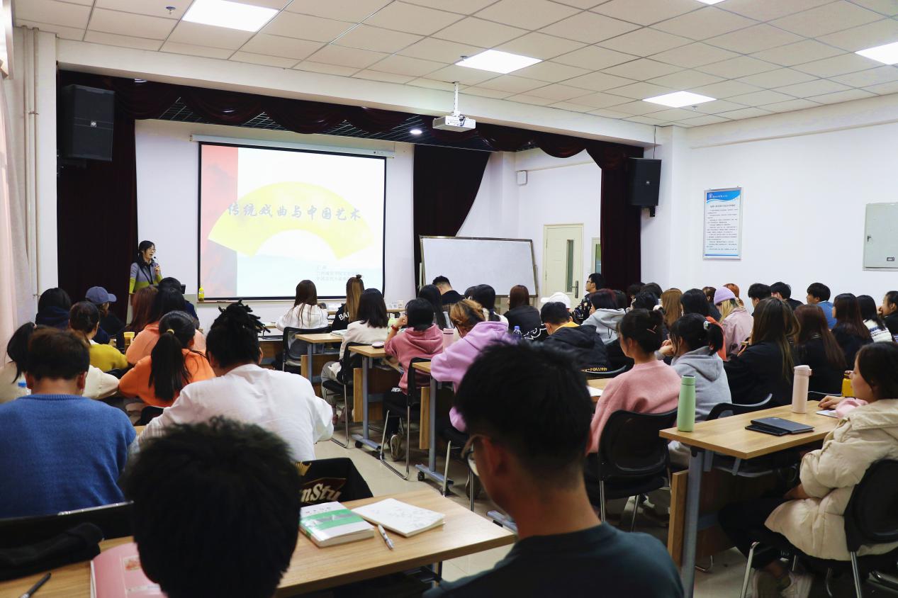 王萍教授从中国传统戏曲的发展入手,为同学们介绍了渊源流长的曲艺艺术发展史,进一步为同学们厘清了戏曲和戏剧的概念与差异;从文学史述与戏曲史述两个层面阐明戏曲艺术的发展脉络。紧接着王教授分别从表演特征、美学特征、民俗价值以及方言价值四个方面详细介绍了传统戏曲的价值和意义,着重阐述传统戏曲在当代社会容易被忽视的问题,强调了戏曲艺术对社会、对民族以及在艺术大类中的重要意义。随后,在关于传统戏曲对当代艺术的影响方面,王教授结合自身研究方向、研究经验从国家仪式与非物质文化遗产两个层面做了简要分享。最后,王教授就文学院戏剧与影视文学专业同学面临考研选择专业及研究方向等问题做了答疑。