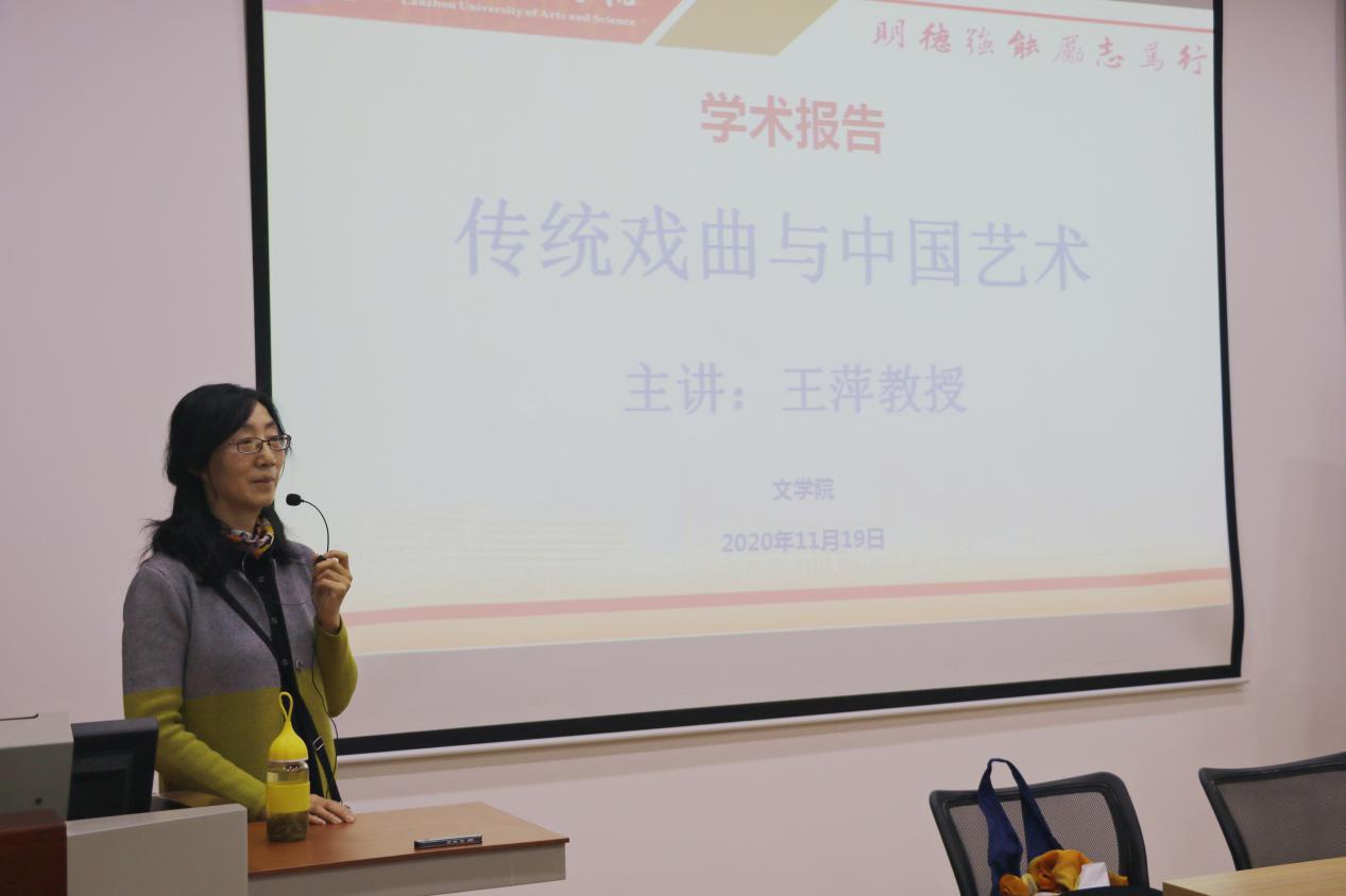 为进一步推进文学院戏剧与影视文学专业建设,提升学生专业素养。2020年11月19日下午,文学院特邀请兰州城市学院文史学院教授、博士生导师、中国古代小说戏剧研究所所长王萍做了题为《传统戏曲与中国艺术》的专题讲座,文学院学生及教师代表共100余人参加了本次讲座,学术讲座由文学院院长马晖教授主持。