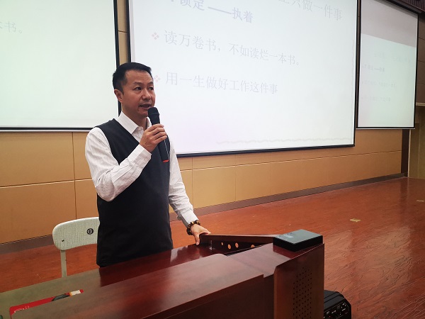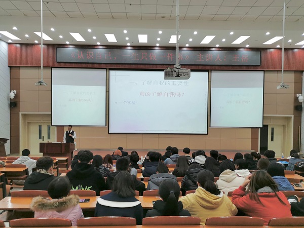 王岳老师就“认识自己”这一主题展开,将职业分为社会型、日常型、现实型、艺术型等不同类型,让学生能明确自己感兴趣的职业类型和职业方向。他通过实例向学生解释了职业价值观,使学生对职业选择有了更多的了解。接着,王岳老师从社交习惯、选择独立性、时间观念等维度提出问题,引导学生明确自己的性格类型和能力类型并且帮助学生寻找与自身能力类型相匹配的职业。王岳老师结合自己的经历,强调了一生只做一件事的重要意义,即只有树立远大的理想信念并且脚踏实地的努力追求才有可能获得成功。讲座最后,同学们积极提问,与王岳老师进行了良好的互动交流。