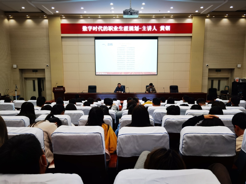 为了提升学生职业规划,加强学生对专业及其就业前景的认知,4月2日上午,学院邀请安博教育集团副总裁、北京师范大学安博教育发展研究院副院长、兰州大学兼职教授黄钢在学术报告厅开展了题为“数字时代的职业生涯规划”的专题讲座,数字媒体学院副院长苏伟、创业就业办公室主任姚林、辅导员任敏兄、霍桐宇以及数字媒体学院数字媒体技术、软件工程、大数据等专业200多名同学参与了讲座,讲座由院长李恒杰主持。