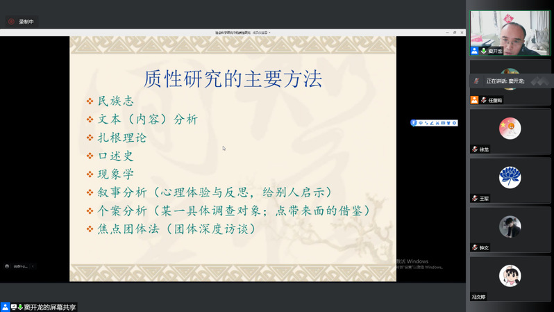 2021年11月4日下午,旅游学院召开了题为“社会科学中的质性研究方法”的线上学术讲座。本次学术讲座由学校科技处与旅游学院共同承办,主讲教师为旅游学院窦开龙博士,参加本次讲座的成员有部分学校领导和老师、旅游学院全体毕业生和部分本科在校学生。