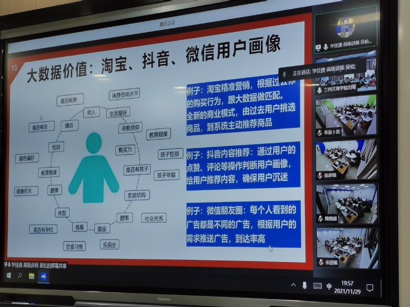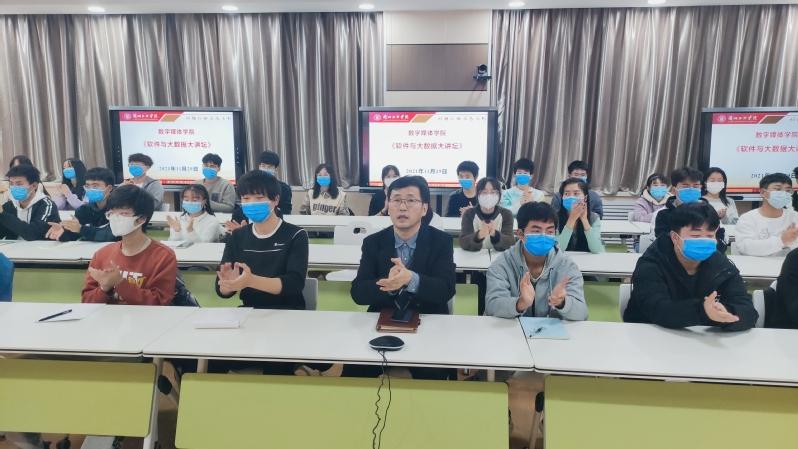 为进一步向学生们普及专业知识,提升专业理解,助力软件工程、数据科学与大数据技术专业群建设,11月29日晚数字媒体学院在2-802教室举办了主题为《大数据前沿应用及Hadoop生态系统解析》的学术讲座。此次讲座邀请到学佳澳的高级讲师吴松为同学们进行报告。受疫情影响,此次报告采用线上线下同时进行的方式,数字媒体学院组织21级软件工程、数据科学与大数据技术专业同学线下参加,19、20级学生自发进行线上学习参与。本场报告由数字媒体学院院长李恒杰教授主持。