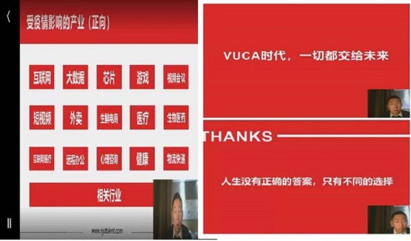 吴学良老师分析了疫情期间的就业形势,知名企业倒闭、企业出现裁员降薪、部分企业停止校园招聘或者推迟校园招聘、一些“不知名”企业迅速崛起、毕业生就业形势不容乐观。