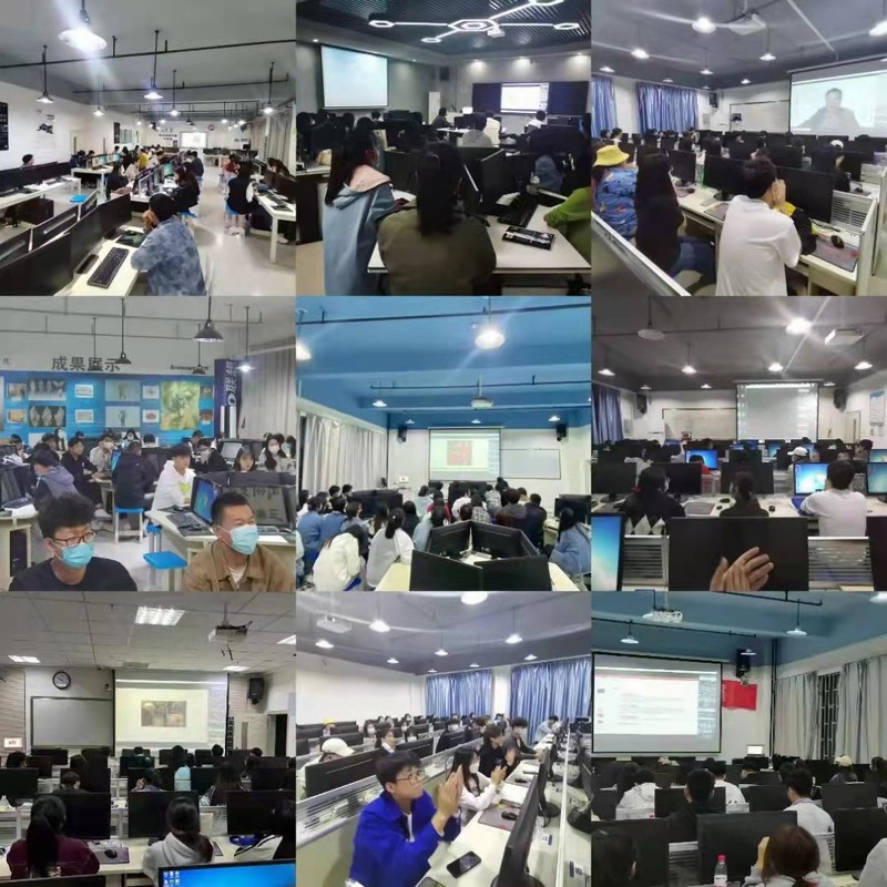 黄心渊教授从中国动画发展和科普教育、沉浸式视觉设计、舞台艺术、虚拟现实、游戏娱乐等方面的结合进行深入讲解,引出“元宇宙”概念,从“元宇宙”的特点、实现、入口等多个方面详细阐述这一最新理念对人们数字化生活所带来的巨大影响。随后与参会学生进行线上互动交流,会场气氛活跃。