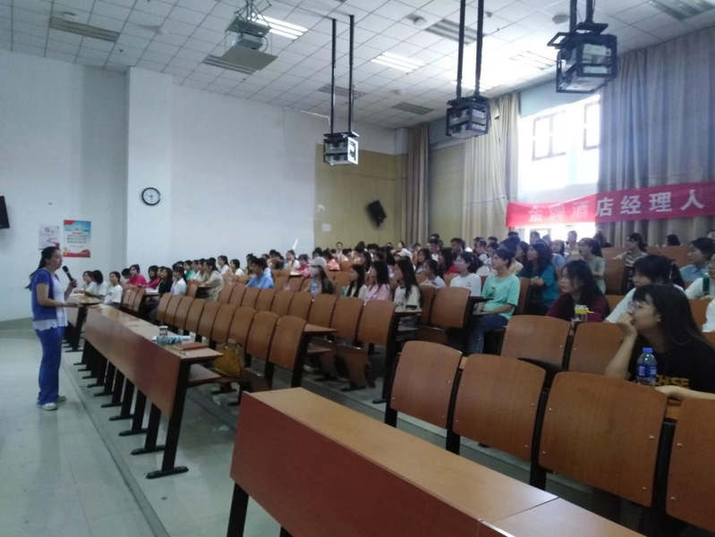 6月23日,旅游学院在综合教学楼5-401举办世行项目金牌酒店经理人系列讲座之“成功的酒店面试”。邀请国家高级职业指导师,国家二级企业培训师,注册礼仪培训师,高级职业生涯规划师,中国心理卫生协会心理咨询师,高级形象管理讲师赵震虹女士主讲。旅游学院酒店管理专业三个年级近一百五十位同学参加了本次讲座。