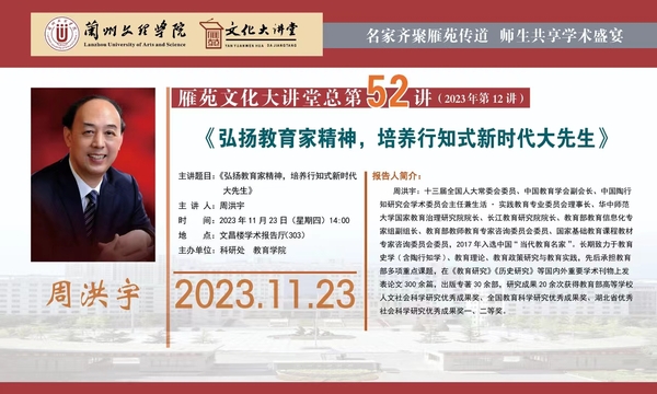 雁苑文化大讲堂——《弘扬教育家精神,培养行知式新时代大先生》讲座预告(总第52场)