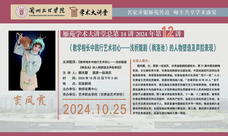 《教学相长中践行艺术初心——浅析陇剧<枫洛池>的人物塑造及声腔表现》专题讲座预告