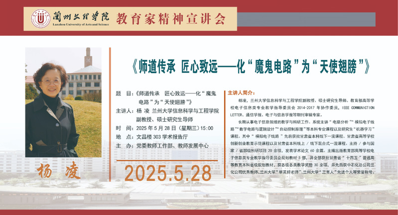 教育家精神宣讲会预告:师道传承 匠心致远——化“魔鬼电路”为“天使翅膀”