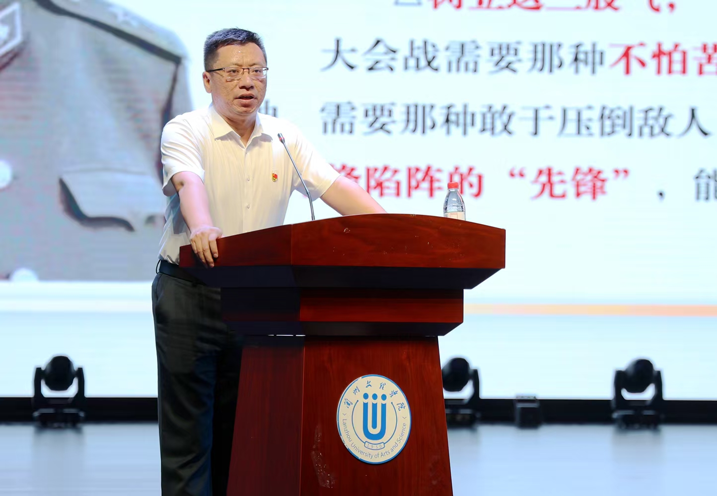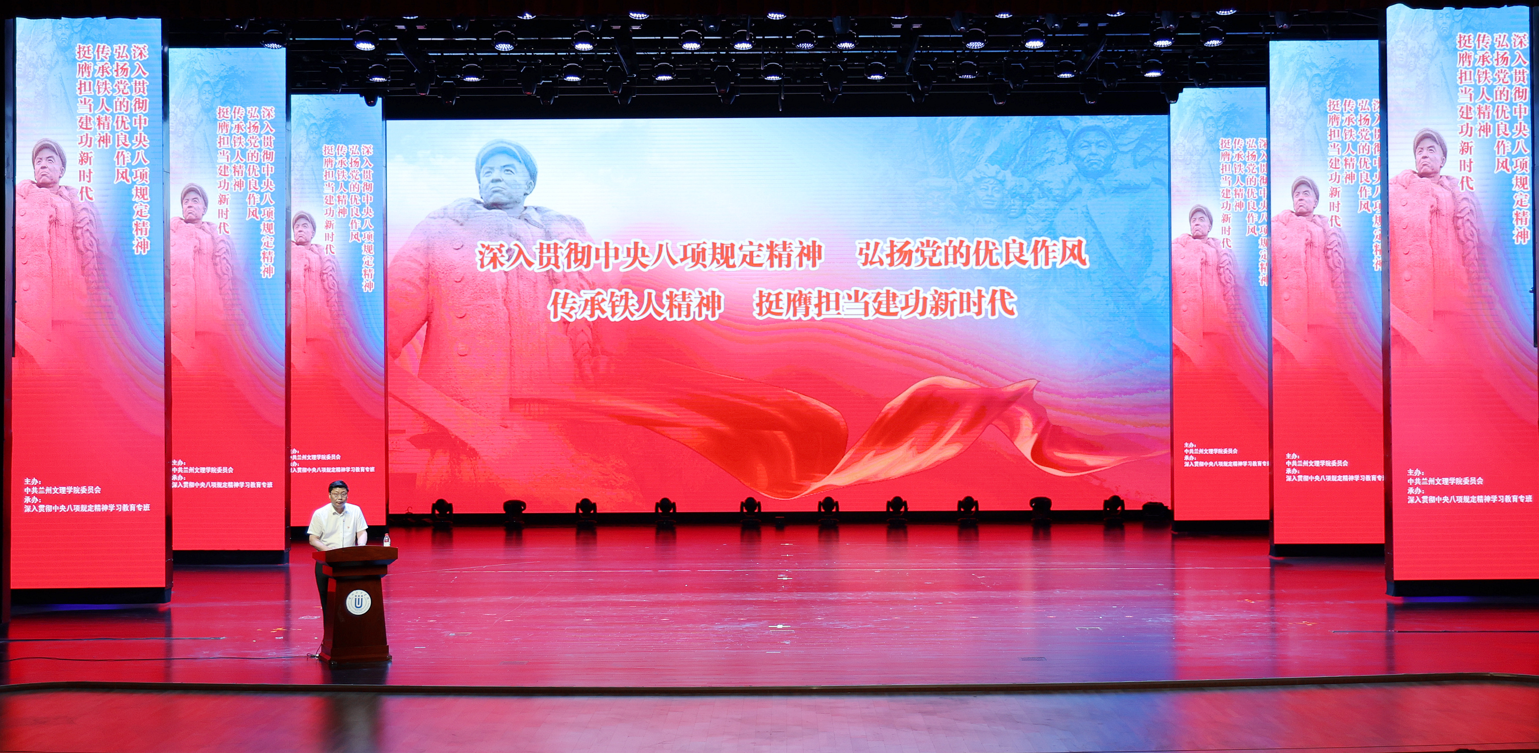 6月19日晚上,学校在艺术实践中心举办“深入贯彻中央八项规定精神 弘扬党的优良作风 传承铁人精神 挺膺担当建功新时代”专题辅导,学校特邀甘肃玉门铁人干部学院副院长、副教授龚天文进行专题报告。全体大学生党员、入党积极分子代表,各二级学院党总支书记、学生党支部书记、组织员共计850余人聆听报告。党委副书记普登学出席。