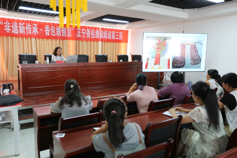 在推动中华优秀传统文化创造性转化、创新性发展的时代背景下,为深化校地合作,加强非物质文化遗产保护传承,提升地方非遗产业市场竞争力,8月19日至20日,美术与设计学院院长吴晓玲教授受邀参与正宁县文化馆第三期“非遗新传承·香包绣创意”培训活动并授课指导。