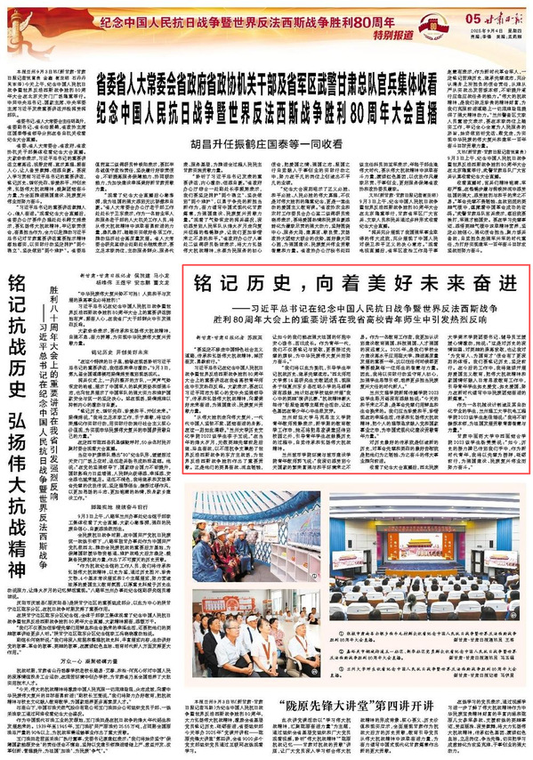 《甘肃日报》发表文章,报道习近平总书记在纪念中国人民抗日战争暨世界反法西斯战争胜利80周年大会上的重要讲话在我省高校青年师生中引发热烈反响,威尼斯学子畅谈学习体会,原文如下: