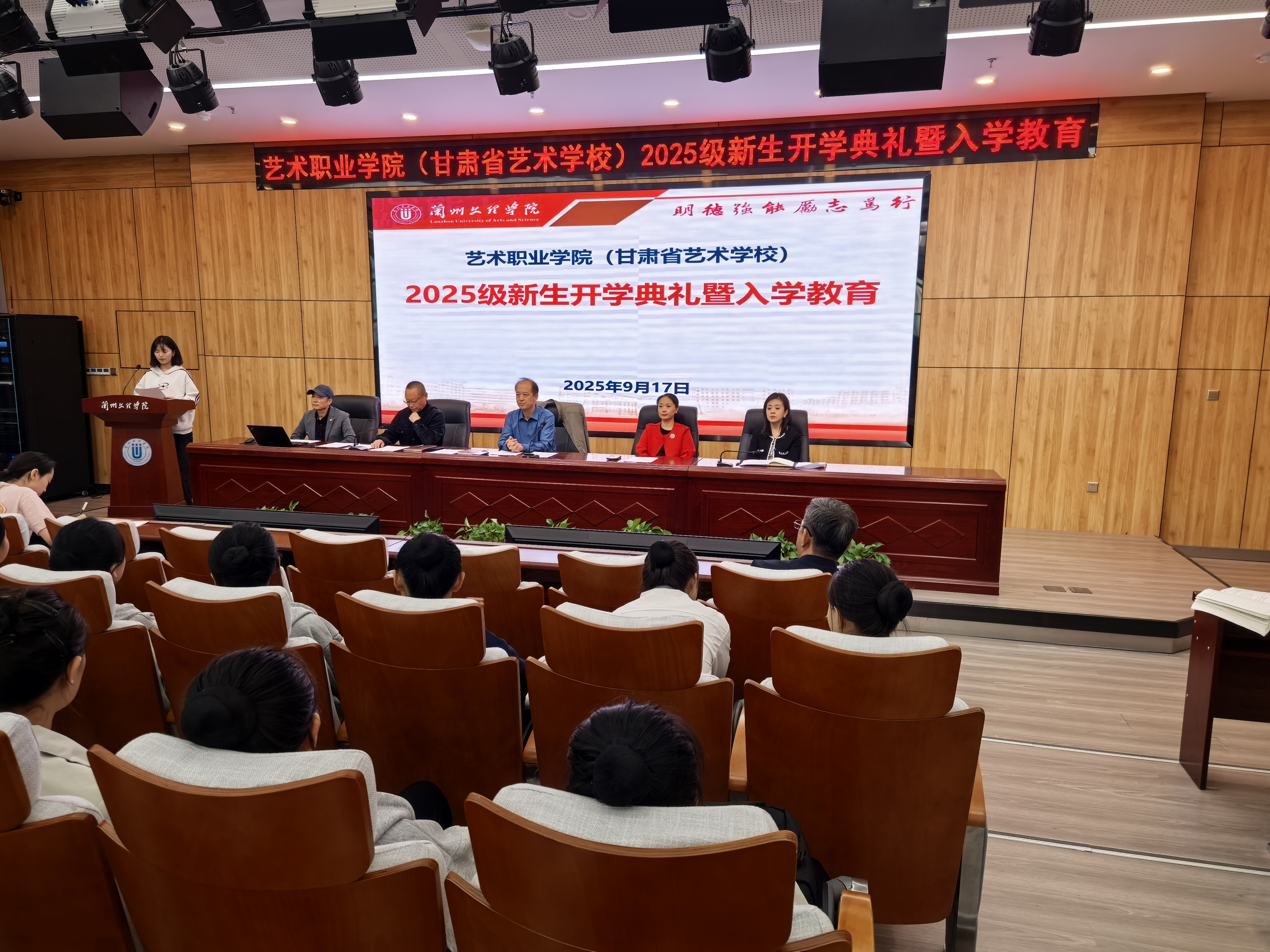 9月17日上午,艺术职业学院(甘肃省艺术学校)在文昌楼303学术报告厅举行25级新生开学典礼暨入学教育大会,学院领导、各科室负责人、班主任及2025级本科、中职全体新生参加会议。