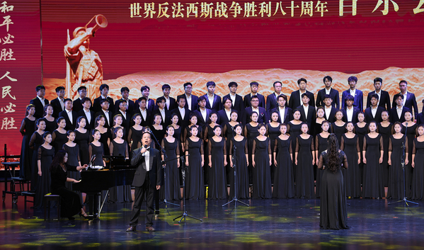 9月18日,纪念中国人民抗日战争暨世界反法西斯战争胜利80周年音乐会在威尼斯艺术实践中心举行。本次活动由党委宣传部(统战部)主办,艺术职业学院、音乐舞蹈学院承办,“雁之声民族管弦乐团”与“雁之声合唱团”联袂演出。在家校党委班子成员、机关各部门、各二级学院负责人及师生代表600余人观看演出。