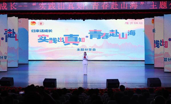 分享会在合唱《追风赶月的人》中启幕。“三下乡” 环节,6 位学生代表依次登台:丁璇在抗战胜利 80 周年之际,以镜头和声音传递抗战精神,实践成果获人民日报、学习强国等权威媒体报道,阅读量破十万;王玥在 “甘南推普行” 中领悟 “普通话是乡村连接外界的纽带”,通过录制教学视频、整理调研报告助力乡村;芦翔以 “‘音’为拥抱・‘乐’教筑梦” 为主题,分享在乡村小学课堂调整教学、感悟艺术教育本质的经历;关玉娟团队走进甘谷县,探寻麻编非遗赋能 800 余名乡村妇女路径,借调研与直播带货推进 “非遗助农”;徐锦在肃南裕固族自治县开展生态保护实践,将 “黄河流域生态保护” 转化为家常话,在孩子心中播下绿色种子;李云霞在临夏感受掐丝珐琅、东乡刺绣匠心,用旅游管理专业知识拍摄短视频、设计文创,让非遗 “活” 在当下。同学们的讲述,让在场师生共感实践带来的蜕变与力量。