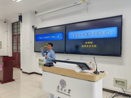 学院赵明刚教授为来访师生做了“宇宙正反物质不对称之谜”的科普讲座。