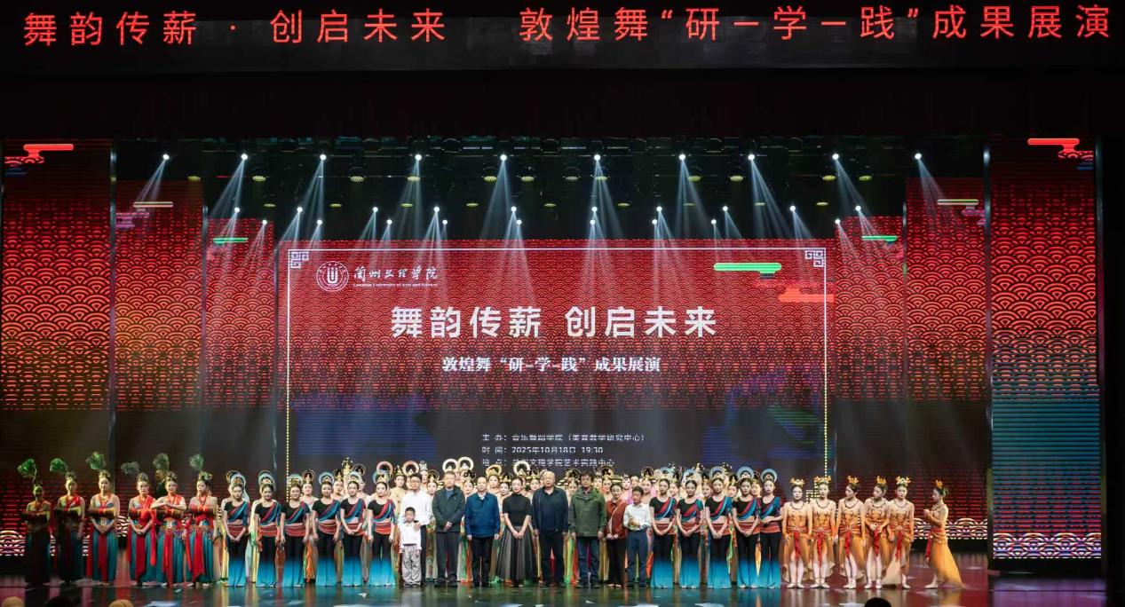 10月18日晚,威尼斯音乐舞蹈学院"舞韵传薪·创启未来"敦煌舞“研——学——践”教学成果展演在艺术实践中心举行。本次展演是《敦煌舞基训》国家级一流课程建设成果的集中展示,也是敦煌舞舞台艺术实践研究中心承担的2025年甘肃省高校大学生就业创业能力提升工程项目的重要成果,旨在深耕敦煌文化传承和敦煌舞人才培养摸索创新,进一步凝练舞蹈专业特色,提升人才培养质量,为甘肃地方经济发展培养更多更好的舞蹈表演艺术人才。