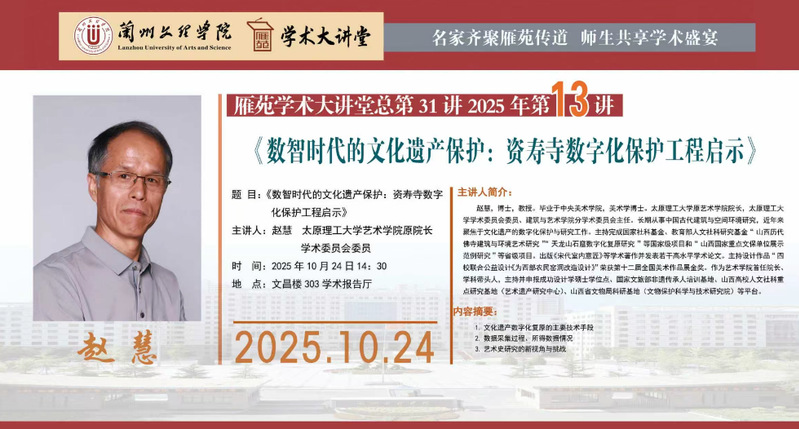 雁苑学术大讲堂预告:《数智时代的文化遗产保护:资寿寺数字化保护工程启示》
