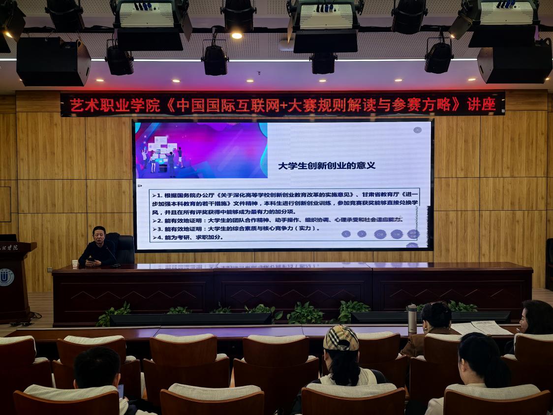 10月25日,艺术职业学院邀请经济管理学院陈庆副教授在文昌楼303学术报告厅举办“中国国际互联网+大赛规则解读与参赛方略”讲座。学院师生代表参加讲座。