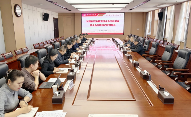 11月17日,甘肃省职业教育校企合作促进会会长赵振文、秘书长尚继星、监事陈军武一行来校开展校企合作项目对接。副校长张焱出席对接会议。