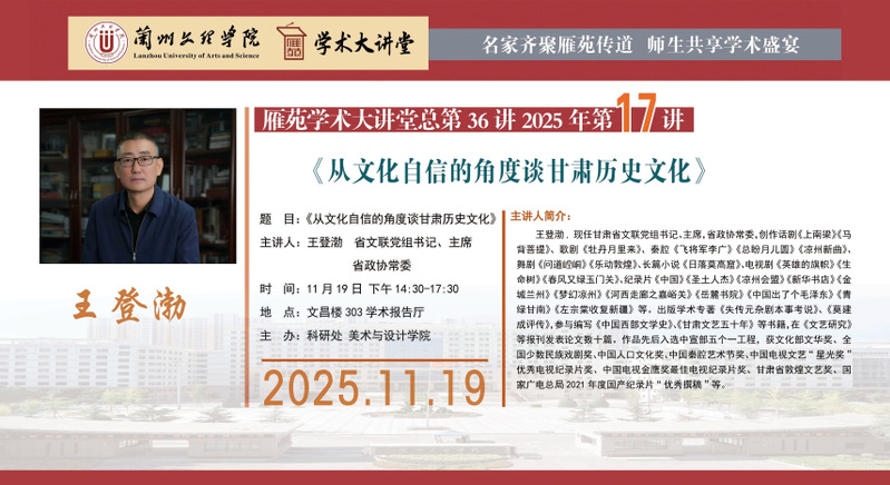 雁苑学术大讲堂预告:《从文化自信的角度谈甘肃历史文化》