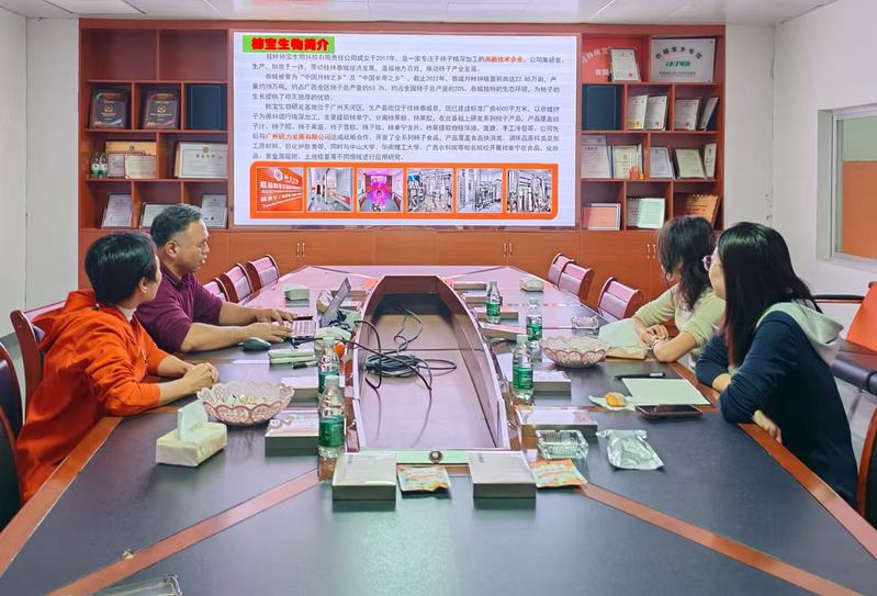 恭城柿子科技小院是集柿子种植研发、农产品深加工和乡村旅游体验于一体的特色产业平台。调研期间,教师团队实地考察了深加工生产线及乡村旅游体验区,详细了解小院在柿子品种改良、农产品附加值提升、农耕文化挖掘及农旅融合等方面的实践成果。