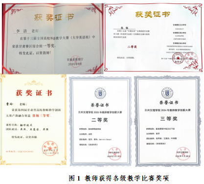 一体化思政育人体系:学院落实“三全育人、五育并举”要求,构建“课程思政—实践思政—文化思政”一体化育人体系。将《理解当代中国》多语种系列教材、《习近平谈治国理政》等内容全面融入专业课与大学英语教学,引导学生坚定理想信念,厚植家国情怀。教师积极参与课程思政竞赛、教改项目和课程思政教学案例建设,2023年获校级思政课二等奖1项、三等奖1项,2025年申报校级课程思政案例3项,以赛促教,提升思政教学水平。