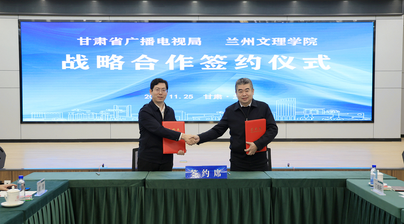 甘肃省广播电视局和学校相关职能部门、学院负责人参加签约仪式。