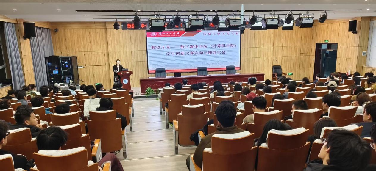 11月27日晚,数字媒体学院(计算机学院)在文昌楼303学术报告厅召开中国国际大学生创新大赛(2026)启动与辅导大会。学院教学负责人、竞赛办公室负责人、相关指导教师及学生代表200余人参加会议。
