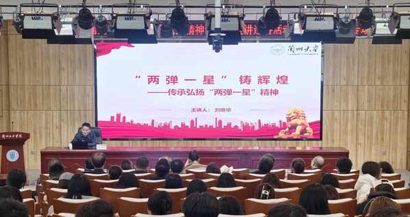 刘继华以《“两弹一星”铸辉煌——传承弘扬“两弹一星”精神》为题,系统梳理了“两弹一星”事业发展的光辉历程,深刻阐释了“热爱祖国、无私奉献,自力更生、艰苦奋斗,大力协同、勇于攀登”的“两弹一星”精神的丰富内涵与时代价值。报告通过详实的史料和生动事例,深情讲述了钱学森、邓稼先、王承书等老一辈科技工作者胸怀祖国、甘于奉献、攻坚克难的感人故事,展现了这一精神所蕴含的爱国主义情怀、历史担当和科学品格。刘继华指出,“两弹一星”精神是中国共产党人精神谱系的重要组成部分,在全面建设社会主义现代化国家新征程中,弘扬这一精神,对坚定理想信念、激发奋斗热情、凝聚创新力量具有重要意义。他结合当前国际国内形势、高校立德树人根本任务,鼓励师生将“两弹一星”精神学习与实际工作、学习相结合,把个人成长融入国家发展大局。