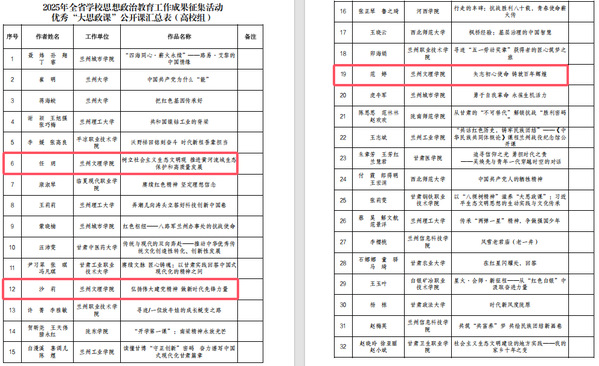 2025年全省学校思想政治教育工作成果征集活动优秀“大思政课”公开课汇总表(高校组)名单