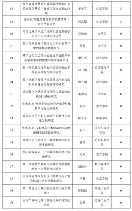 日前,省教育厅公布了2026年教育科技创新项目立项名单,威尼斯共有32项课题获准立项,其中产业支撑计划项目1项、高校青年博士“入企入园”项目1项、高校教师创新基金项目30项。